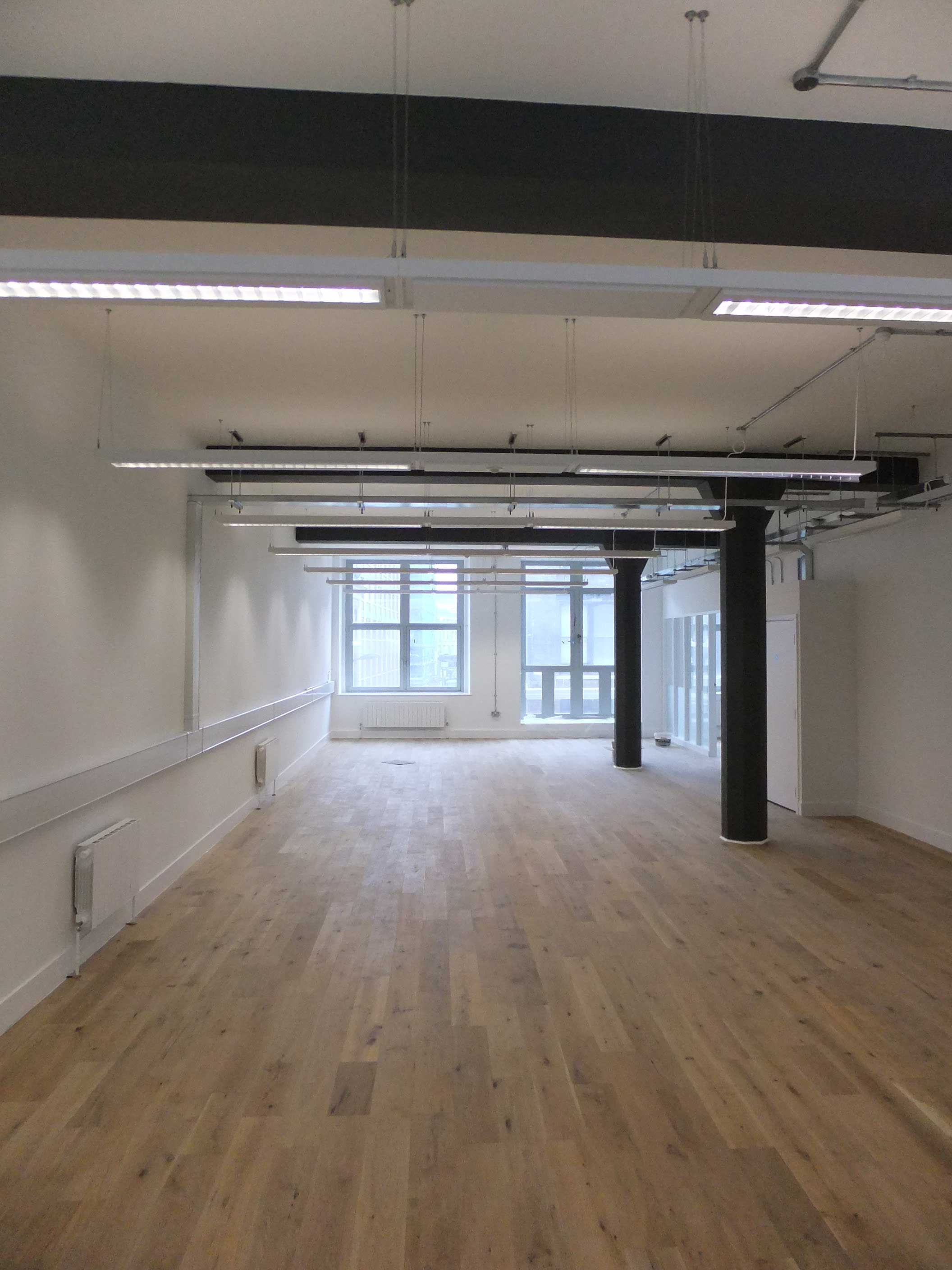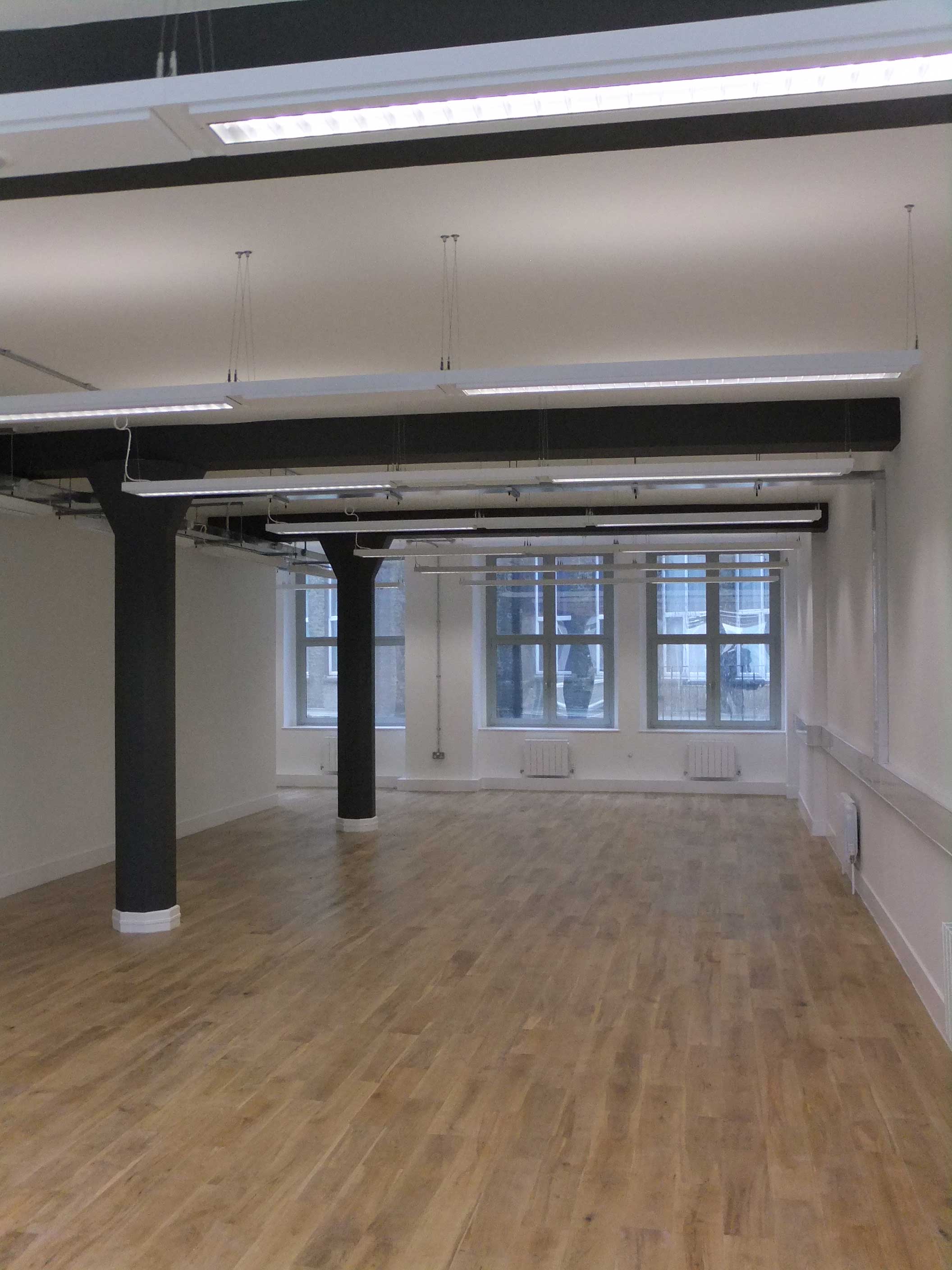 The building is located in the much improved Old Street area near the City of London. It was originally used for the manufacture of drums, then divided up and rather crudely altered to form office space at the end of the 20th century. Extensive works were required to put the exterior fabric into good repair. Because the building had been separated from its neighbour, thereby removing one of the fire escapes, it was also necessary to upgrade the fire protection. This was achieved by installing a pressurization system to the central staircase core, activated automatically by the new fire alarm system. We also designed and specified the interior fitting out of three floors of office space to let, with new heating and lighting services, as well as new basement and upper floor show room facilities for our client’s own occupation.
